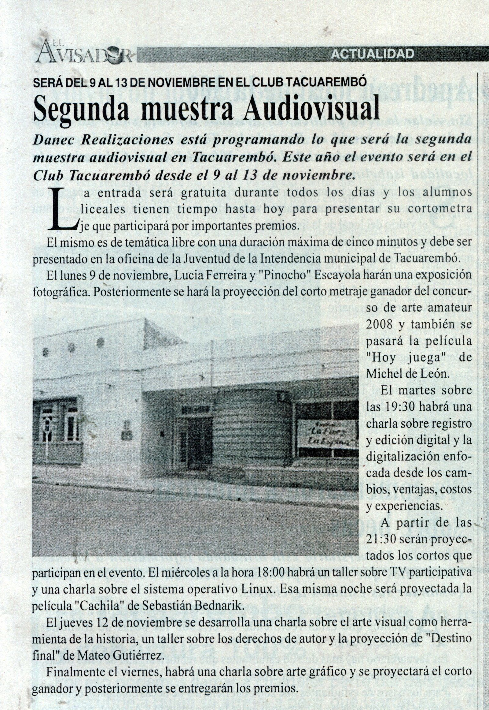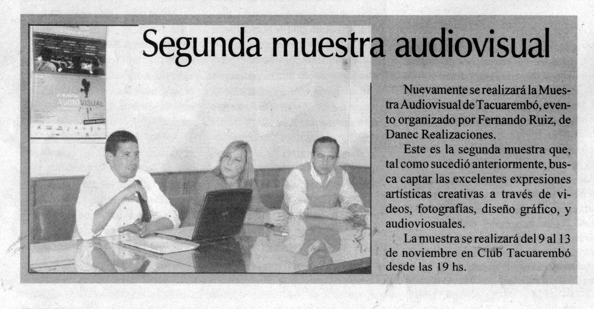 En el 2008 y 2009 se organiza y efectúa la 1ª y 2ª Muestra Audiovisual de Tacuarembó que se realizó en los salones de Club Tacuarembó, la intención era crear un espacio para el arte visual de nuestra ciudad y para que el público conociera los trabajos de las productoras locales. También se realizó un concurso de arte visual amateur donde jóvenes liceales pudieran expresar su creatividad en este ámbito. Meta que se logró con éxito, muchos fueron los trabajos audiovisuales logrados por chicos de varias instituciones liceales públicas y privadas.